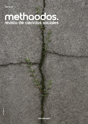 methaodos.revista de ciencias sociales es una publicación científica internacional independiente de periodicidad semestral (mayo-noviembre) en formato digital (ISSN: 2340-8413 | DOI: 10.17502) creada por el grupo de investigación methaodos.org, adscrita al Área de Sociología de la Universidad Rey Juan Carlos de Madrid y coeditada por el Instituto de Ciencias Sociales Computacionales.